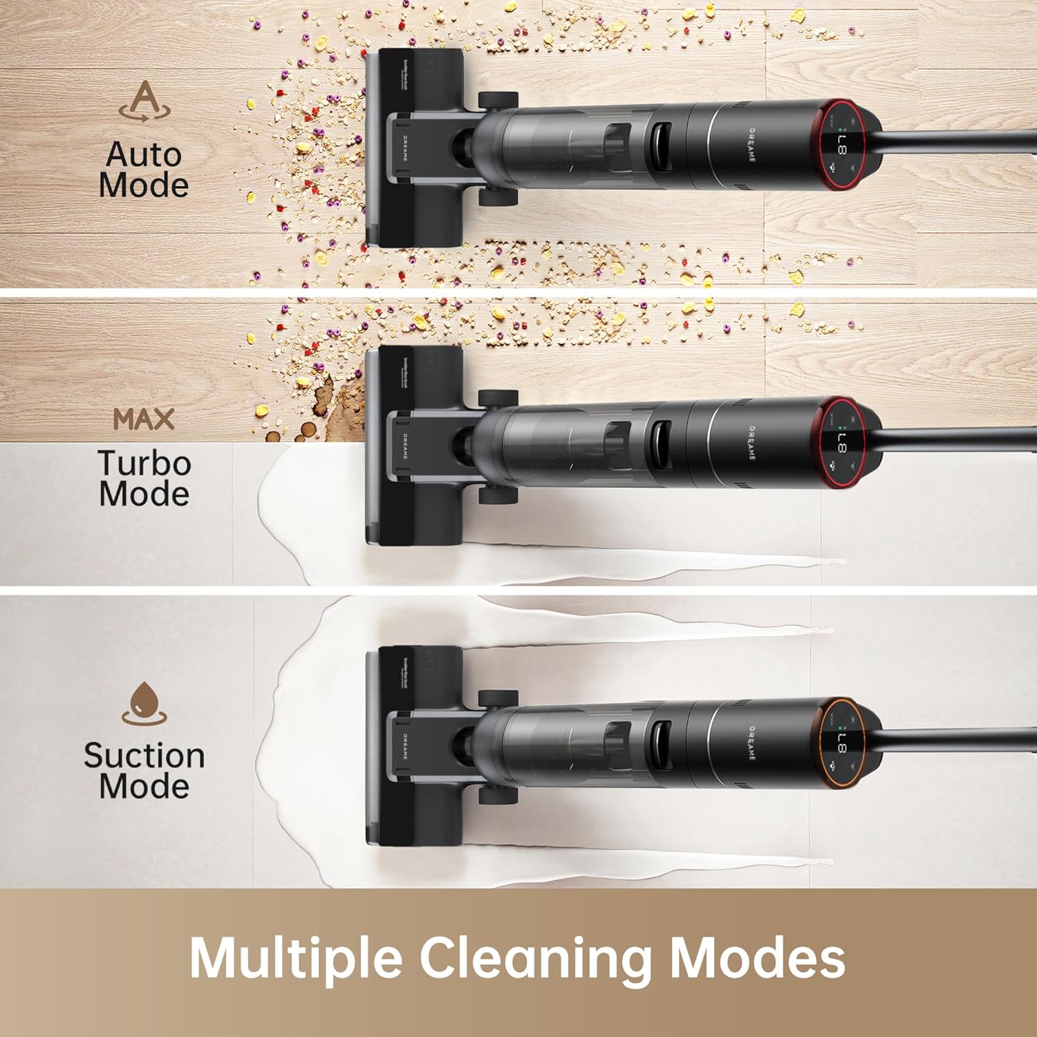 - 【All-in-one for Wet&Dry Messes】Use Auto mode for your everyday cleaning, or switch to higher gear With Turbo for the real messy jobs. To go water-free, the suction mode is the ideal option. With these three modes available, you can always dial up the perfect cleaning setting for whatever dirt you need to tackle.